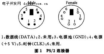 目前,PC机广泛采用的PS/2接口为mini-DIN 6pin的连接器,如图1所示.