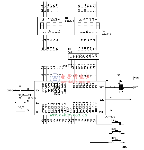 用单片机AT89C51设计的数字钟,AT89C51 Digital Clock