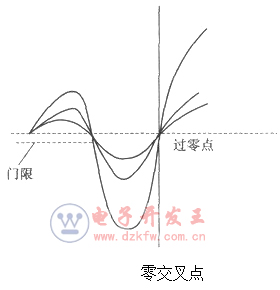 所谓“零交叉点”,就是过阈值(门限)后的第一个零点,以该点来确定反射波的到达。如下图所示,反射波过零点不随波形变化。