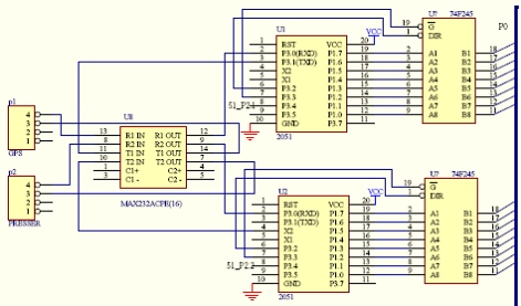 · 各从机上电初始化后接收传感器串行数据,然后通过P1口接收主机地址,当地址与自己相符后,调整245方向并由245向主机发送传感器数据,此过程由握手线负责控制。