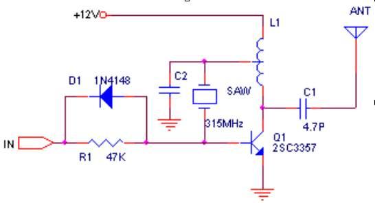 早期的发射器使用的是LC振荡电路,但该电路受分布参数的影响太大, 频率漂移较为严重,稳定性不好,且调试复杂,现已基本不用。取而待之的是高稳定性的新型器件,常见的有声表滤波器、陶瓷谐振器等。