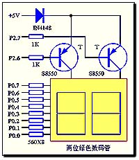 网友可以看到:P2.6和P2.7端口分别控制数码管的十位和个位的供电,当相应的端口变成低电平时,驱动相应的三极管会导通,+5V通过IN4148二极管和驱动三极管给数码管相应的位供电,这时只要P0口送出数字的显示代码,数码管就能正常显示数字。