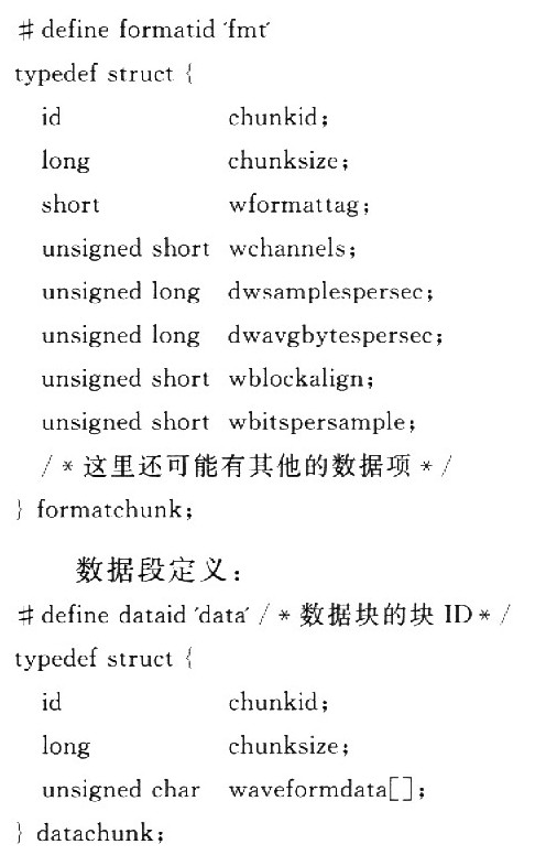 一般来说,可以从WAV文件中提取声音数据,标准的WAV格式的声音文件含有声音的采样数据和文件头。文件头描述了后面声音数据的一些信息,如通道数、采样频率、采样位数以及数据的长度等。