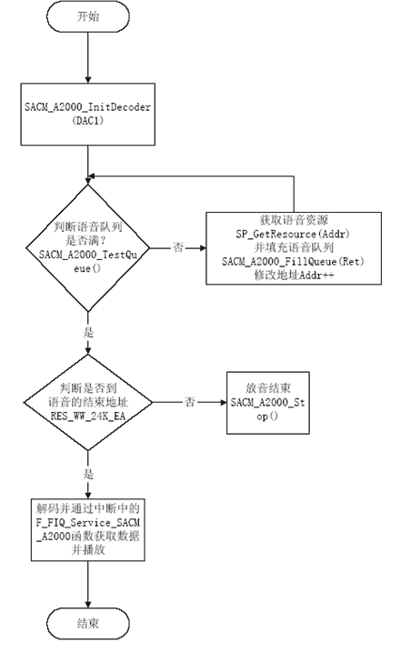 程序设计中语音报数使用的是SACM-A2000,考虑到程序比较简单,首先使用了自动报数方式,但发现不能进行连续报数,于是使用了非自动方式,流程图如图4-2所示。