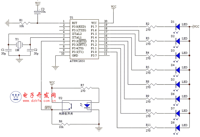此电路电路非常简单,代码短,但是用到了2051的外部中断编程和T0、T1定时器编程,非常适合初学者练习。我制作这个玩具花费了两个晚上的时间。此电路和程序还有扩展改进的空间,如在长时间不摆动的情况下可以使单片机进入省电模式,显示不仅限于对称图片等,大家可以试试。