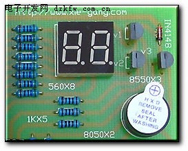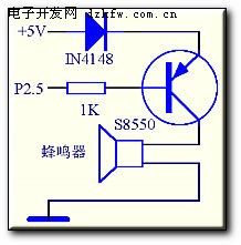 AT89C51单片机的P2.5口控制一个8550的三极管,三极管控制电磁蜂鸣器的电源通断。