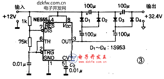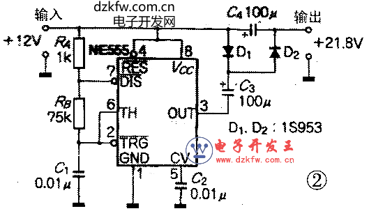 NE555倍压电路,升压电路,NE555 Step-up converter