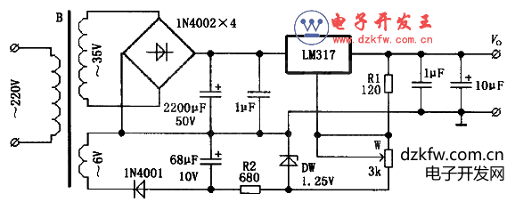 关键字:LM317,稳压电源电路图,LM317可调电压电源