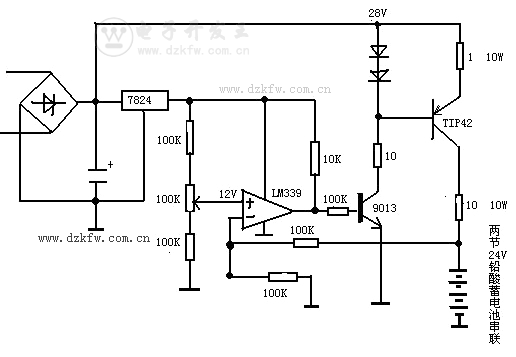 12V铅酸蓄电池充电电路图 可以给两节24V铅酸蓄电池串联充电.