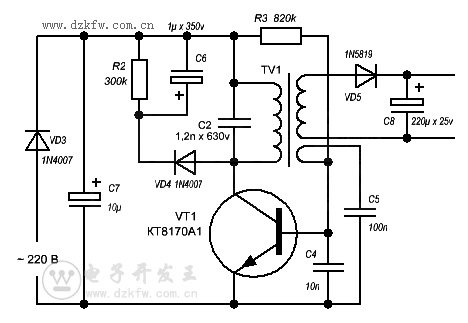 这种简单的开关电源很常见,剃须刀,手机充电器上都差不多,可以参考。输出电流不大。