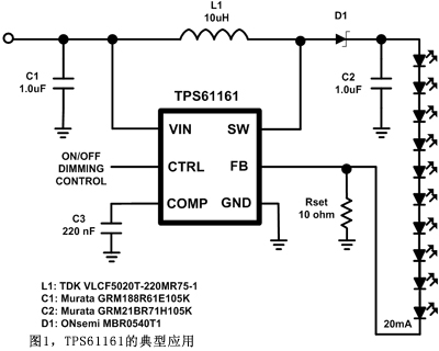 图1TPS61161的典型应用