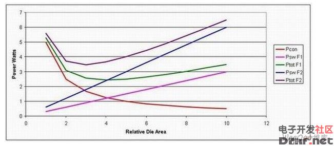 但是,在更高的工作频率下,最佳裸片面积较小,从而带来成本节约。实际上,在低频率下,通过调整裸片面积来最小化损耗会带来极高成本的设计。但是,转到更高工作频率后,我们就可以优化裸片面积来降低损耗,从而缩小电源的半导体体积。这样做的缺点是,如果我们不改进半导体技术,那么电源效率将会降低。