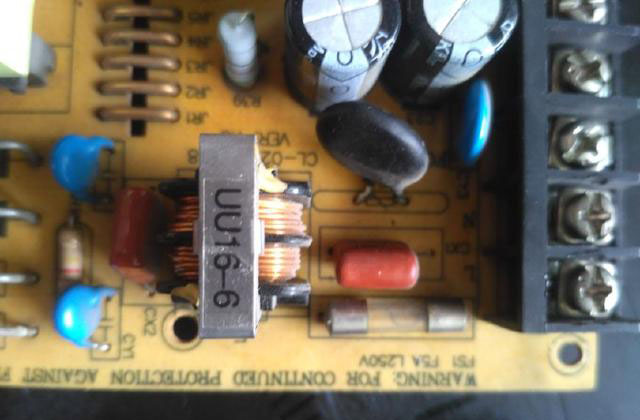 共模电感是加强滤波,一般都和滤波电容配合使用,有两组线圈,一组串联在火线中,一组串在零线中,请注意,电感是串在电路中的。