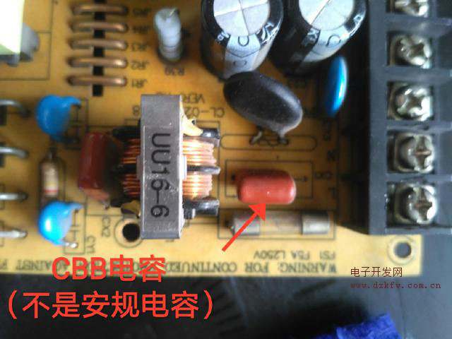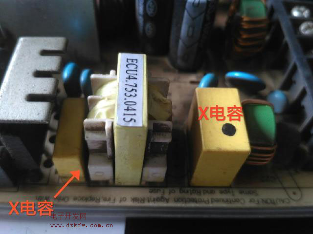 在正规的开关电源中,X电容是颗四四方方的安规电容,而有些厂家生产的就直接使用了普通的CBB电容替代了