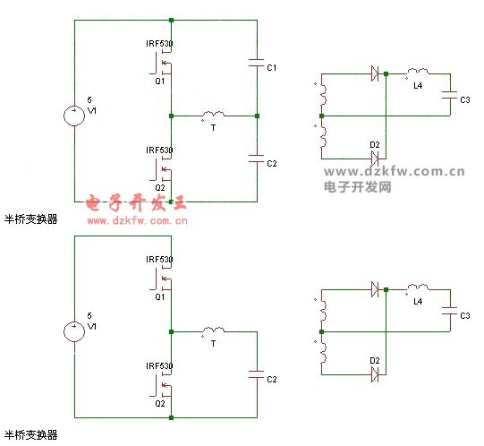 半桥变换器也是双端变换器,以上是两种拓扑。