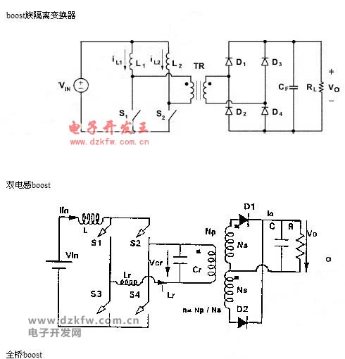 全桥变换器在大功率场合是最常用了,特别是移项ZVS和ZVZCS 接下去,会收集一些三电平变换器贴出来,在以后就给出boost族的 隔离变换器....反激变换器.....正反激变换器......APFC.....PPFC.... 单级PFC.....谐振变换器等.....