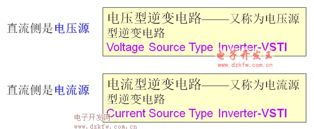 ②按直流电源性质可分为由电压型直流电源供电的电压型逆变电路和由电流型直流电源供电的电流型逆变电路。
