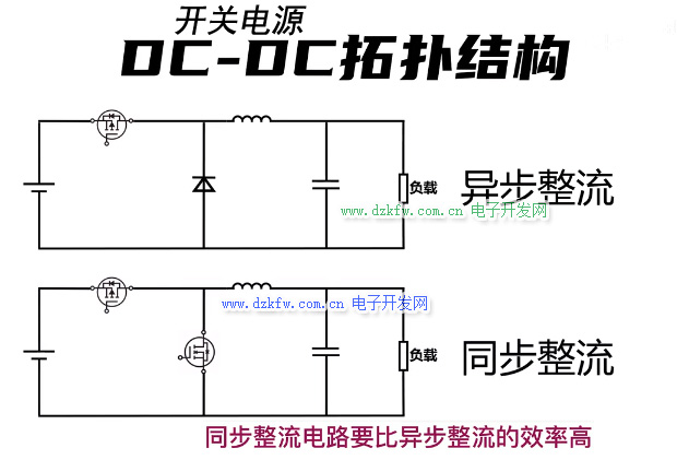 同步是采用通态电阻极低的功率 MOS管,来取代整流二极管以降低整流损耗的一项新技术;它能大大提高 DC/DC 变换器的效率。