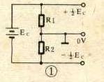 将图1中两个电阻换为两个大电容就成了图2所示的电路。这种电路功耗降为零,适用于正负电源的负载相等或近似相等的情况。