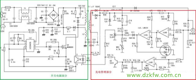 电动车充电器种类繁多,电路数不胜数,但都离不开两个主要部分
