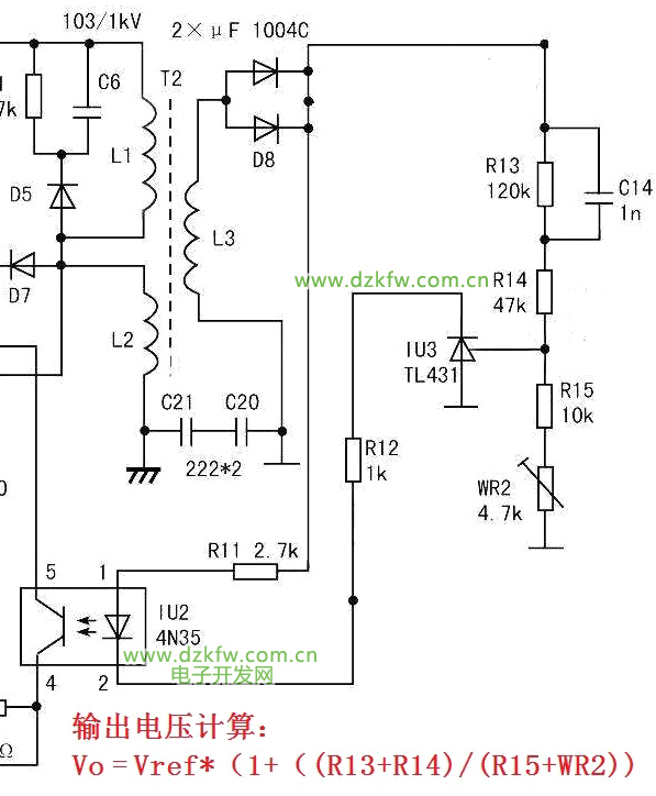 而IU4B被接成了同相放大器结构,输出电压与电流取样电压成比例