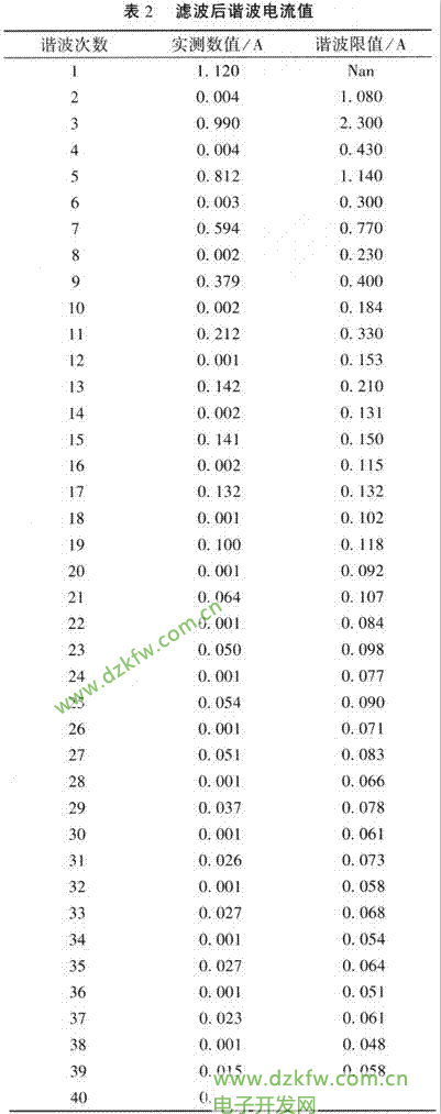 表l所列为测得的7~21次谐波电流的数值,其中11、15、17次谐波电流都超标。