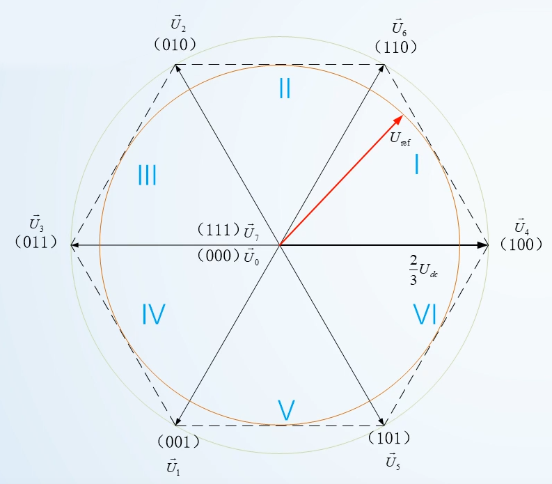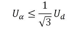 我们在正六边形中做一个内切圆,其中圆的半径就是该逆变器所能输出的最大电压。由于我们采用的是等幅值变换,故: