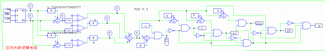 通过上表可知,经过判断N的大小就可以确定合成向量目前所处的区间了。将上述的区间选择方法用PSIM搭建硬件电路如下: