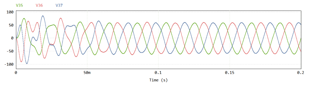 **总结:**本根据上面的仿真我们可以看到逆变器在60ms后可以稳定输出三相电压。