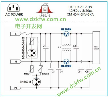 确定压敏电阻是用于防雷还是防止电子仪器及设备内部的操作过电压,以及防雷应用的测试条件。雷击测试常用1.2/50μS & 8/20μS组合波。