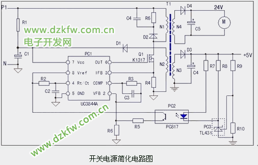 UC3844组成的变频器维修技术之开关电源电路图及维修技巧