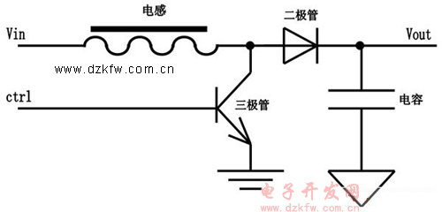 上图是原理。由于vout的负载不确定,因此,vout不可能稳定在我们期望的电压上,可能是升压,也可能是降压。解决这个问题的办法是利用vout的电压进行反馈。当vout电压低于期望值时,反馈信号就会调整ctrl,使它打开三极管的时间相对延长。则电感充能更多,从而使vout上升。反过来也一样。