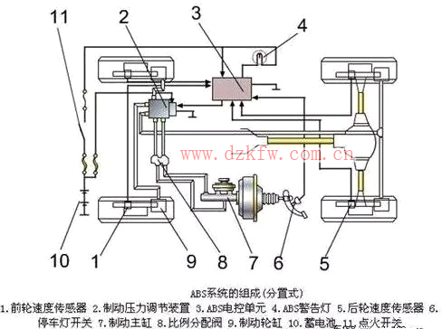ABS 防锁死 刹车 系统分机械和电子式两种,机械式 ABS 结构简单,主要利用其自身内部结构达到简单调节制动力的效果,没有传感器来反馈路面摩擦力和轮速等信号,完全依靠预先设定的数据来工作,因此在任何路面情况下它的 工作方式 都是一样的,目前国内只有一些低端的皮卡等车型仍在使用机械式 ABS 。电子式 ABS 则由液压制动系统、车轮转速传感器、电子控制器和电磁调节器等部件组成。其工作原理就是由轮速感应器监测车轮的转速,监测信号汇集到电子控制器内分析。一旦监测到车轮快要 抱死 时,电子控制器会发出指令给电磁调节器,由它控制油压分配阀调节各个车轮的制动分泵,以“一放一收”的点放形式来控制 刹车 摩擦片,解除车轮的锁死现象。
