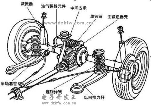 (1)由于左、右车轮的运动相对独立、互不影响,以减少行驶时车架或车身的振动,同时可以减弱转向轮的偏摆。