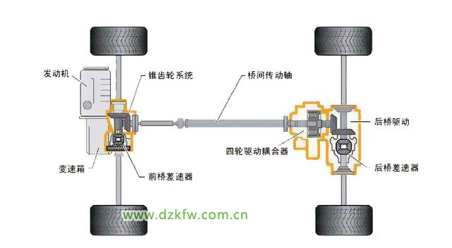 2:分时四驱是剩余两类型适时与全时四驱的基础。一般称之为分时四驱的系统都是在后驱平台的基础上升级,前置后驱是纵置发动机,也就是发动机的曲轴与前桥呈十字交叉的结构,动力输出端朝向后桥。与其连接的变速箱也是长长的纵置机型,连接硕大的传动轴直接驱动后轮。
