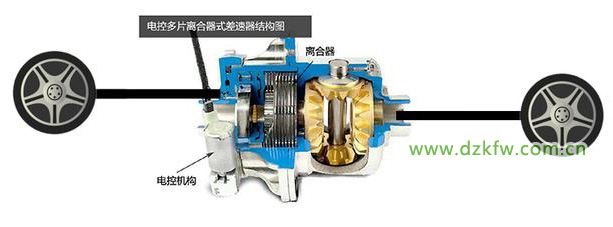 「多片式离合器限滑差速器」是这种四驱的基础,也是实现“适时四驱”的核心。所谓适时指绝大多数时间都是前轮驱动,只有在前轮打滑的时候,限滑差速器通过压紧湿式多片式离合器从而实现与“转动中的后传动轴”结合,此时动力才能传递到后桥(后轮)上。