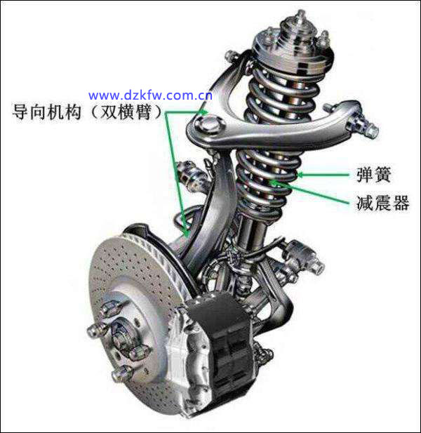 把路面作用于车轮上的垂直反力、纵向反力和侧向反力以及这些反力所造成的力矩传递到车架或承载式车身上,保证汽车正常行驶,即起传递力和力矩的作用。通俗的讲就是将行驶时车轮受到的各种方向的冲击力及驱动轮对于地面所造成的制动力及转向力传递到车身上面。