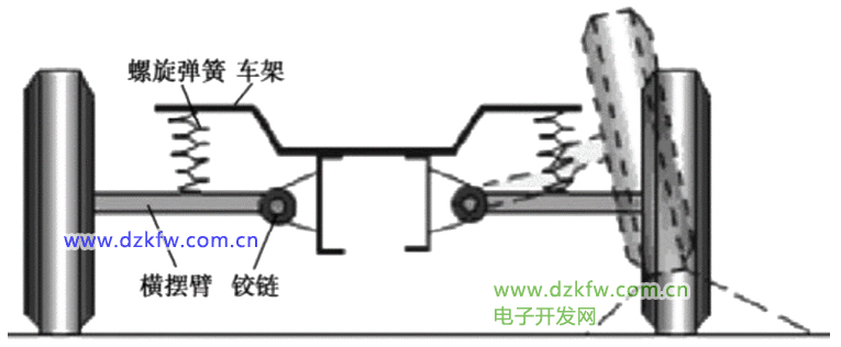 利用悬架的某些传导构件保持车身和车轮之间正确的运动关系,确保车轮与地面良好的接触。
