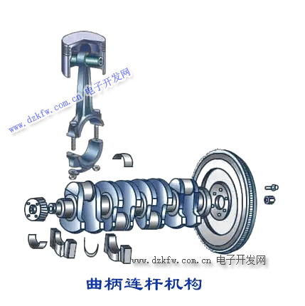 曲柄连杆机构是发动机实现工作循环,完成能量转换的主要运动零件。它由机体组、活塞连杆组和曲轴飞轮组等组成。在作功行程中,活塞承受燃气压力在气缸内作直线运动,通过连杆转换成曲轴的旋转运动,并从曲轴对外输出动力。而在进气、压缩和排气行程中,飞轮释放能量又把曲轴的旋转运动转化成活塞的直线运动。