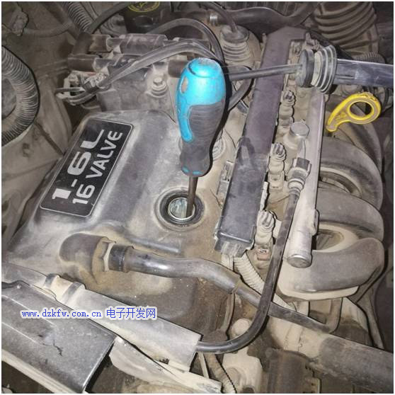 我们都知道四缸发动机,其1与4缸同上同下,2与3缸同上同下。也就是我们在对曲轴时,可以拆掉1缸或者4缸的火花塞,然后往里面放入把螺丝刀或者长铁丝,观察螺丝刀或铁丝动作的情况可以去判断当前一缸是否处于上止点。具体如下图