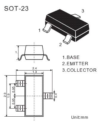 下图是贴片三极管封装SOT-23尺寸资料(贴片三极管s9014LT1)