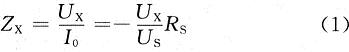 为了提高信号源精度,正弦信号源U0采用直接数字频率合成信号源(DDS)。R0为信号源内阻,RS是标准电阻,Zx为被测阻抗,A为高输入阻抗、高增益放大器,主要完成电流一电压变换功能。测量时,开关S通过程控置于Ux或US端。由图1有:UX=IOZX,US=-IORS,被测阻抗ZX为: