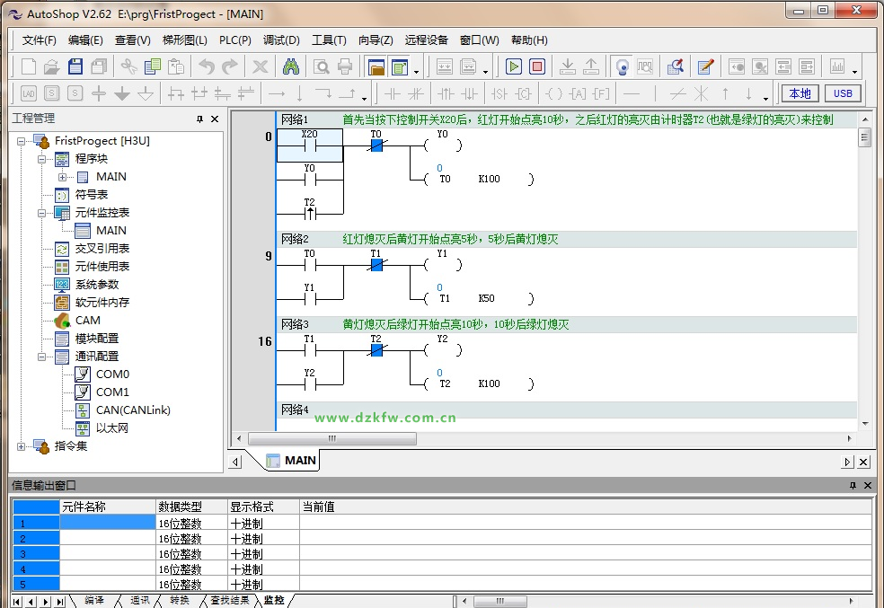 我们先来编写一个简单的梯形图程序:交通灯控制程序。
