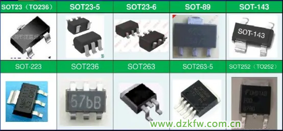 SOT是一种贴片封装,通常引脚在5脚或以下(3脚、4脚)器件的贴片封装形式,尺寸较小,很多晶体管采用此类封装。