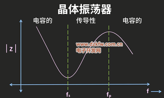 类似于LC谐振电路有自己的谐振频率,上文所谓的特定频率就是石英晶体的谐振频率(固有频率),而且有两个,如下图1-5所示。折两个谐振频率分别为fs和fp,其中fp略大于fs。
