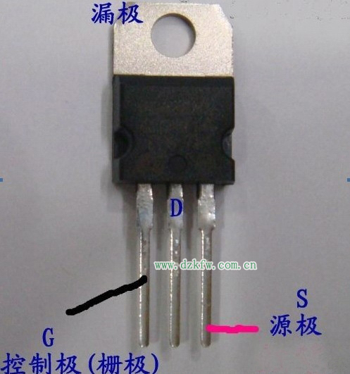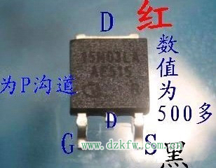 我们主板中常用的MOS管G D S三个引脚是固定的。。。不管是N沟道还是P沟道都一样。。。把芯片放正。。。从左到右分别为G极D极S极!如下图: