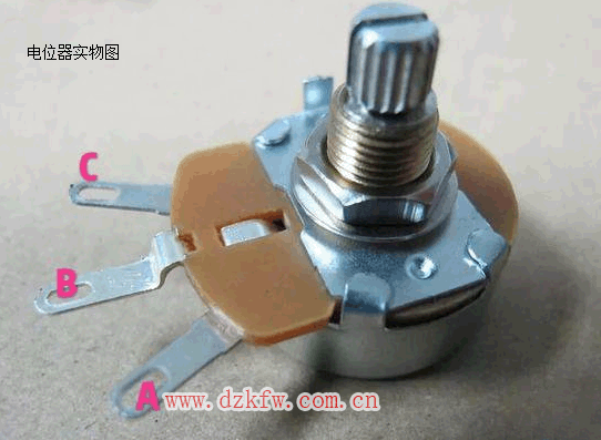 电位器就是一个滑动变阻器,通过改变滑动片与电阻体的接触位置来调整B点的输出电压(请看下图理解).