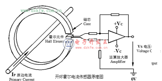开环霍尔电流传感器原理图
