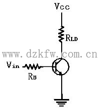 负载电阻被直接跨接于三极管的集电极与电源之间,而位居三极管主电流的回路上,输入电压Vin则控制三极管开关的开启(open) 与闭合(closed) 动作,当三极管呈开启状态时,负载电流便被阻断,反之,当三极管呈闭合状态时,电流便可以流通。 详细的说,当Vin为低电压时,由于基极没有电流,因此集电极亦无电流,致使连接于集电极端的负载亦没有电流,而相当于开关的开启,此时三极管乃工作于截止(cut off)区。