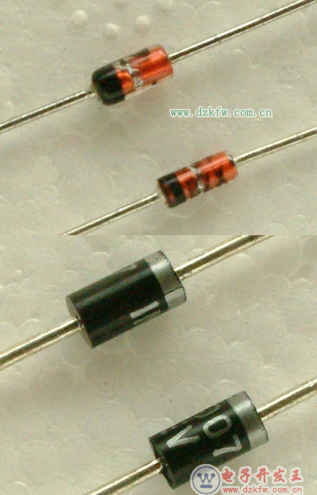 二极管种类有很多,按照所用的半导体材料,可分为锗二极管(Ge管)和硅二极管(Si管)。根据其不同用途,可分为检波二极管、整流二极管、稳压二极管、开关二极管等。按照管芯结构,又可分为点接触型二极管、面接触型二极管及平面型二极管。